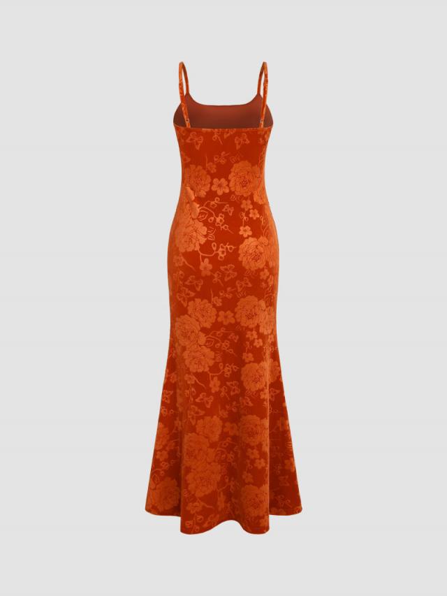 SHELL Composition: 95% Polyester 5% spandex Style Deets Waist Line: Mid Rise Length: Maxi Neckline: Scoop Neckline/U-neckline Design Info Occasion: Date, Wedding, Exhibition, Vacation, Work, Holiday Pattern Type: Floral Pattern Detail: Floral Clothing Detail: Flower