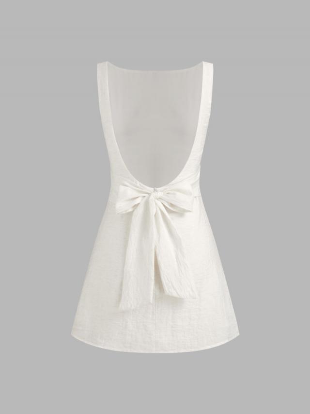 SHELL Composition: 56% rayon 34% Polyamide 10% Linen Style Deets Fit Type: Regular Waist Line: Mid Rise Chest Pad: No Padding Lining: Lined Length: Short Neckline: Boat Neck Pocket: No Design Info Occasion: Date Pattern Type: Solid Clothing Detail: Knotted, Backless