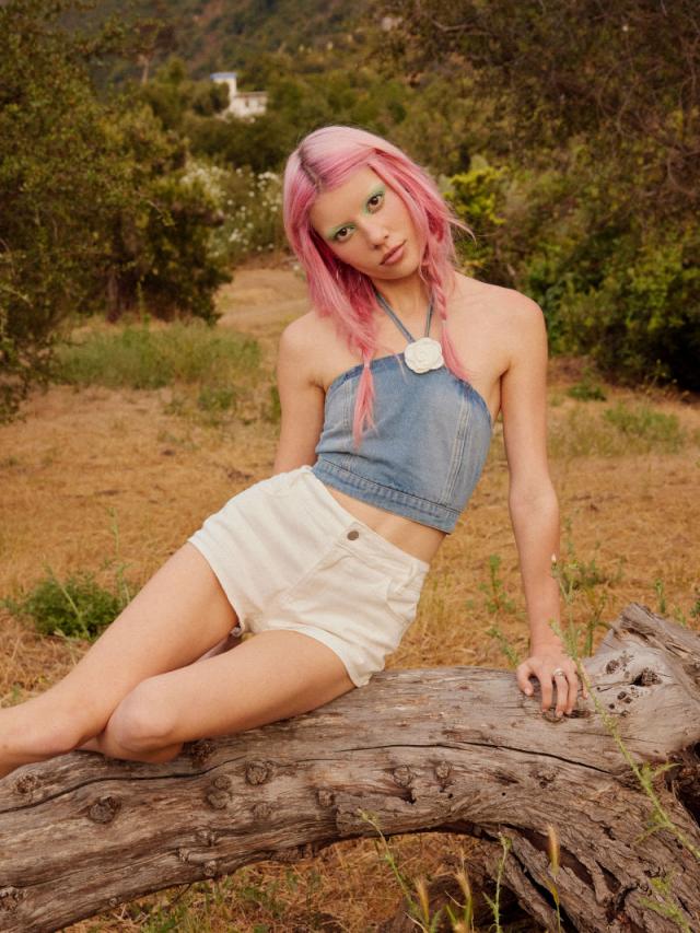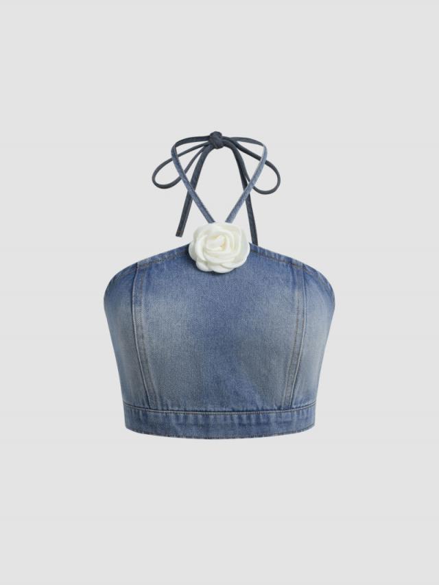 Composition: 20% polyester 80% cotton Stretch: Non Material: Denim Style Deets Fit Type: Regular Length: Crop Neckline: Halter Neckline Design Info Occasion: Date Pattern Type: Solid