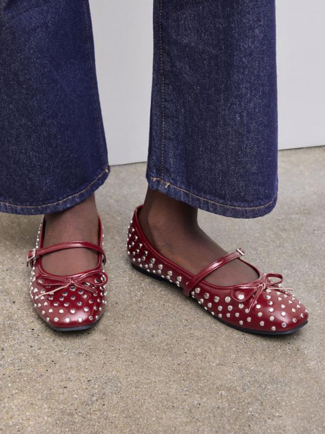 Cider Mary Janes | Women BOWKNOT STUDDED MARY JANE FLATS Wine
