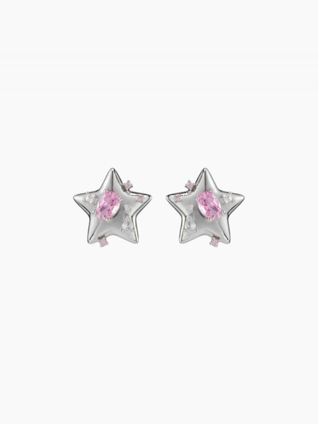 Cider Silver Plated Jewelry | Women PLATINUM PLATED COPPER RHINESTONE DECOR STAR S925 STUD EARRINGS Silver